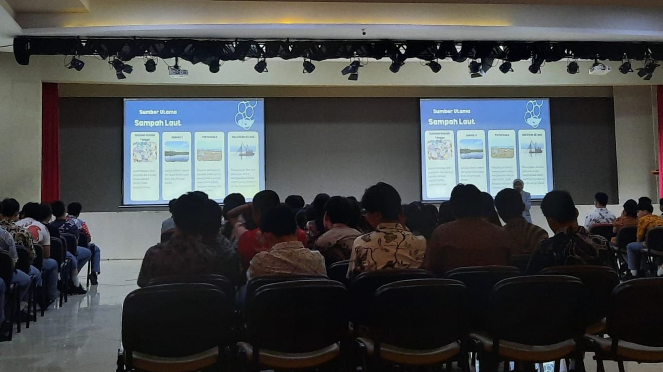 Dalam sesi penyampaian materi, para mahasiswa menjelaskan bahwa sekitar 80% sumber sampah laut berasal dari aktivitas manusia. Sampah ini kebanyakan adalah sampah rumah tangga seperti kantong belanja plastik dan kemasan makanan, yang menjadi penyumbang terbesar penyebab terganggunya ekosistem laut. Selain itu, limbah industri yang mengandung bahan kimia berbahaya, logam berat, dan serpihan plastik turut memperparah pencemaran; bahkan aktivitas pariwisata juga meningkatkan volume sampah laut seperti botol minuman dan alat makan sekali pakai.