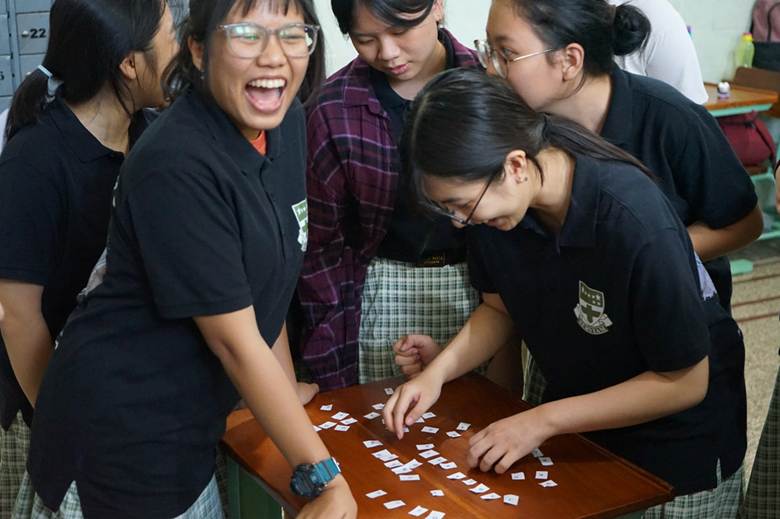 Sementara itu, “Spell the Bible” mengajak peserta menyusun potongan huruf di atas meja, yang melatih konsentrasi sekaligus memperkaya pengetahuan. Terakhir, “Rangkai Sabda” menantang peserta menemukan ayat dalam Alkitab dan menyusunnya kembali dengan benar, kemudian membacakannya di hadapan teman-teman sekelas.