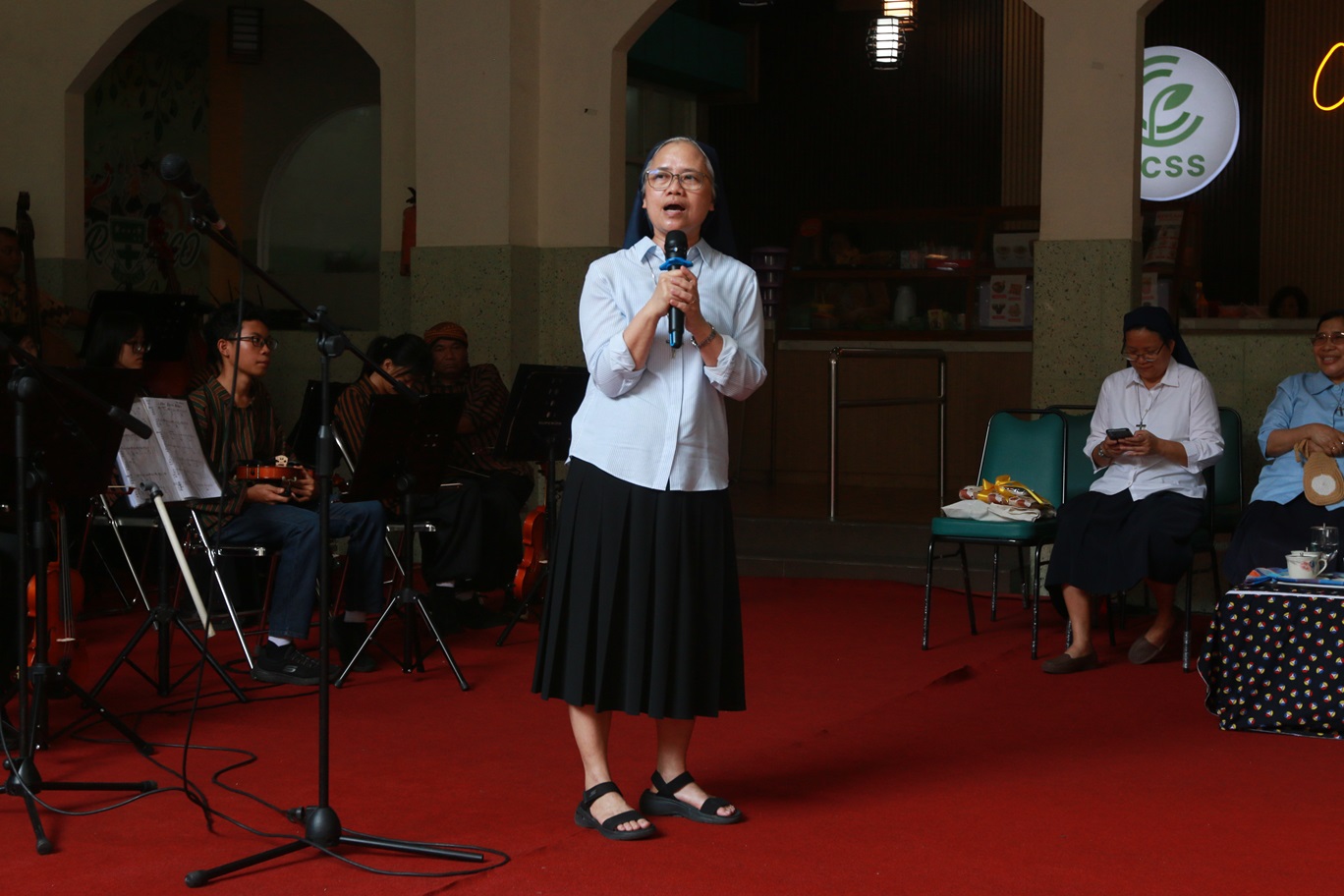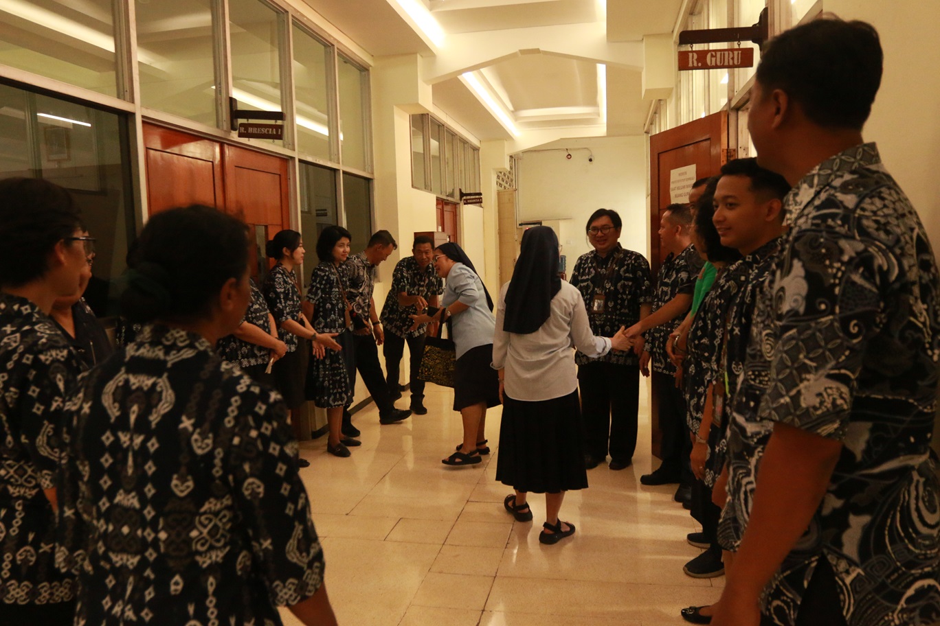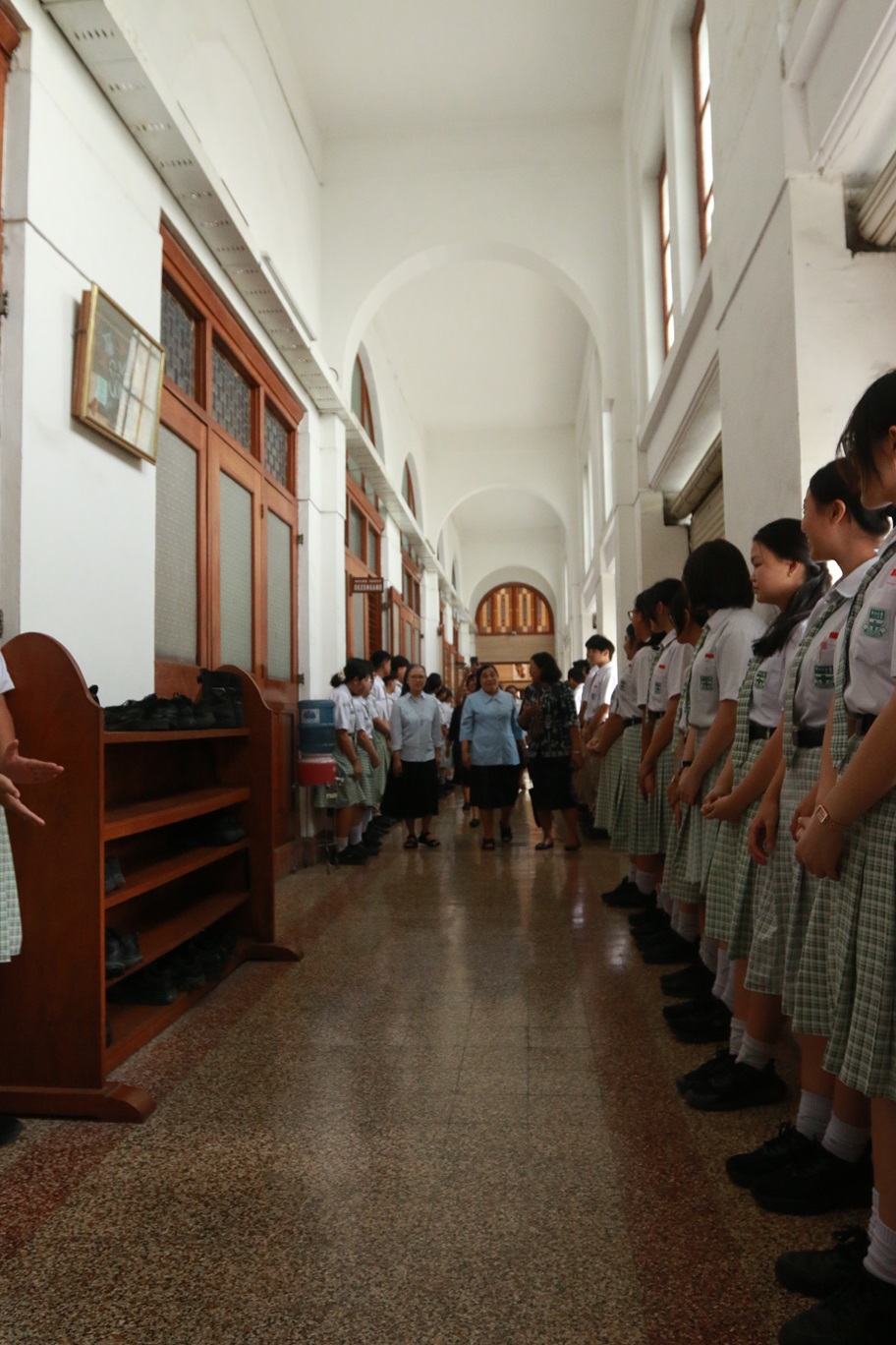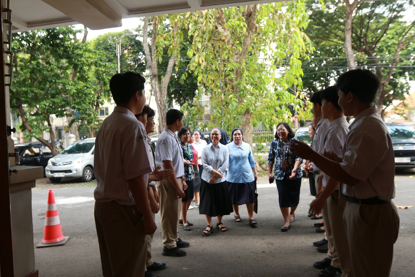 Sejak pagi hari, atmosfer sekolah terasa berbeda dengan wajah-wajah ceria yang menghiasi setiap sudut. Kegiatan diawali sambutan hangat pihak sekolah yang dipimpin oleh Kepala Satuan Pendidikan SMA Santa Maria Surabaya bersama jajaran guru. Para siswa tampak antusias berjajar sepanjang lorong portir dan UKS hingga ke ruang band untuk menyambut kehadiran para suster.