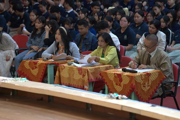 Suasana menjadi semakin interaktif ketika sesi berbagi bersama audiens berlangsung; beberapa peserta menyampaikan kesan, pesan, serta pengalaman mereka selama mengikuti rangkaian ajang Putra-Putri Sanmar. Momen ini tidak hanya memperlihatkan sisi personal para finalis, tetapi juga memperkuat kedekatan antara peserta dan seluruh warga sekolah.